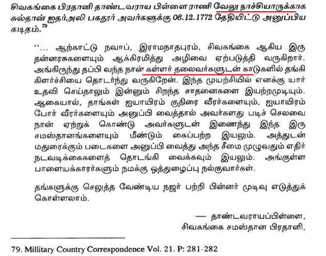 சிவகங்கையை மீட்க வேலுநாச்சியாருக்கு உதவிய கள்ளர் நாடுகள்( கிபி 1780)